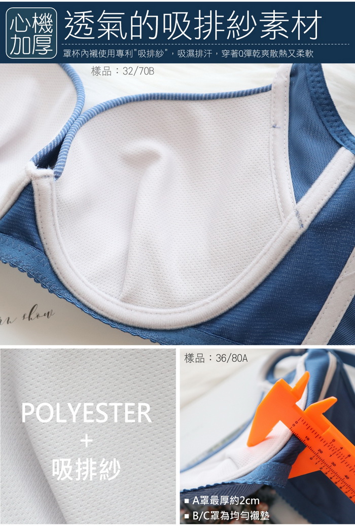罩杯內襯使用專利"吸排紗",吸濕排汗,穿著Q彈乾爽散熱又柔軟