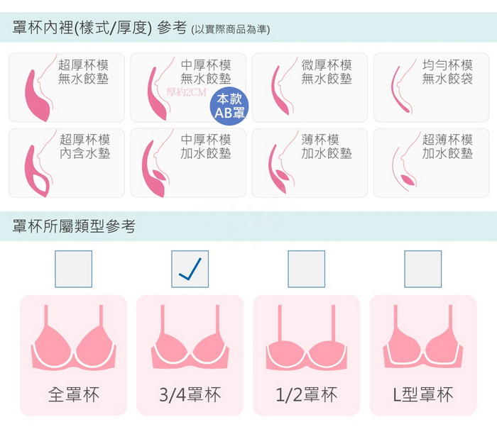 立體3/4杯模,讓胸部更加渾圓豐滿,展現誘人好身材
