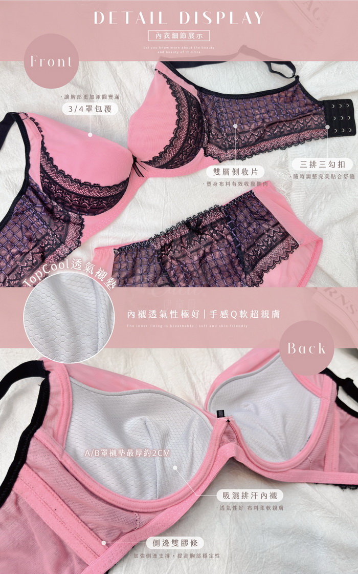 立體3/4杯模,讓胸部更加渾圓豐滿,展現誘人好身材