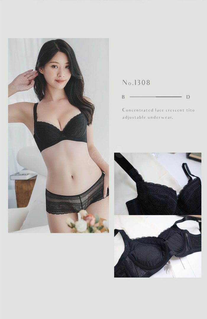 內衣【布莉安娜】浪漫蕾絲 月牙提托調整型系列 *B-D罩 (黑) #1308