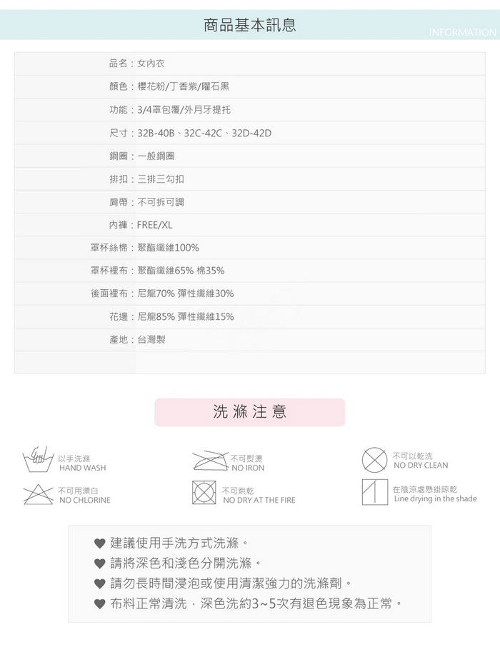 B-D罩杯皆附贈可拆式魔術水餃襯墊,最厚約1.5CM