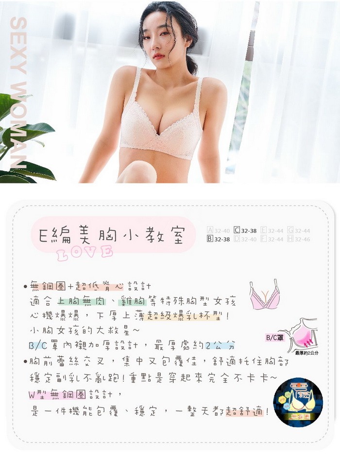 W型無鋼圈美胸"零壓力" "零束縛" "無勒痕",全方位完美包覆