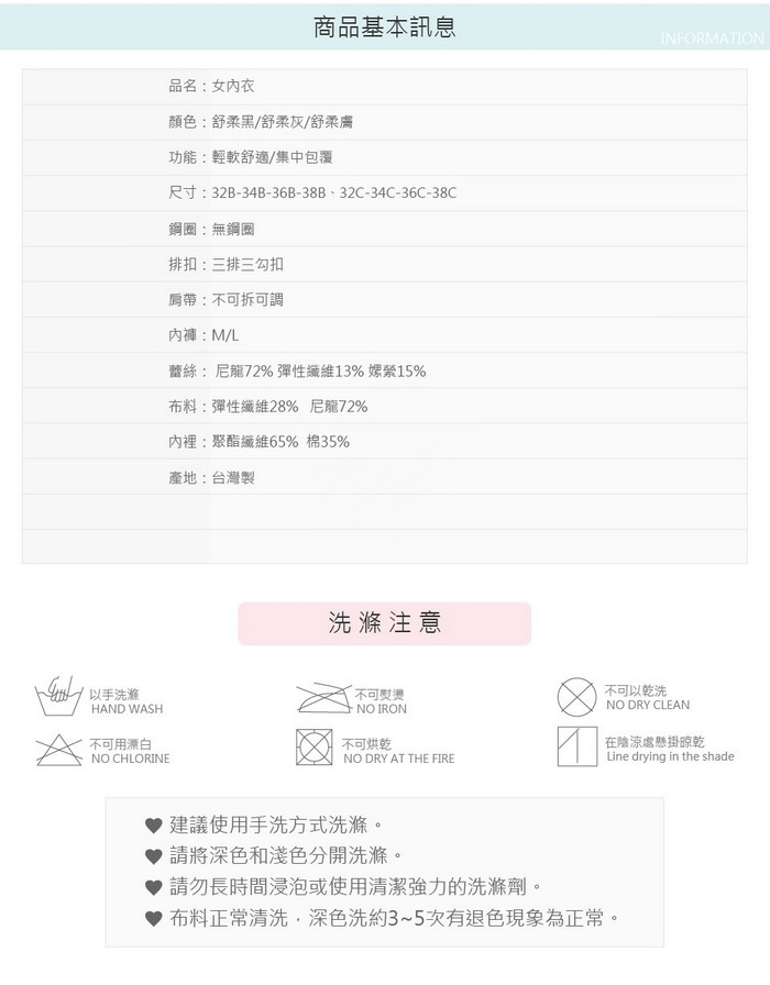 W型無鋼圈設計,是一件機能包覆、穩定,一整天都超舒適!