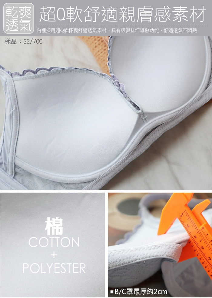 罩杯為一體成型Q軟杯模,穿上後能貼合胸型