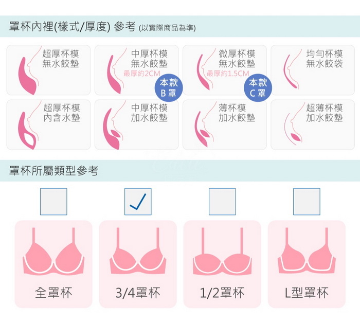 B罩屬於波浪襯墊下厚上薄款最厚約2CM