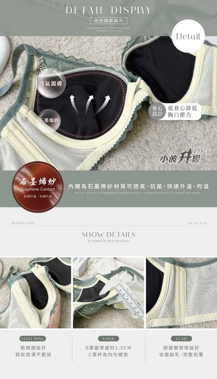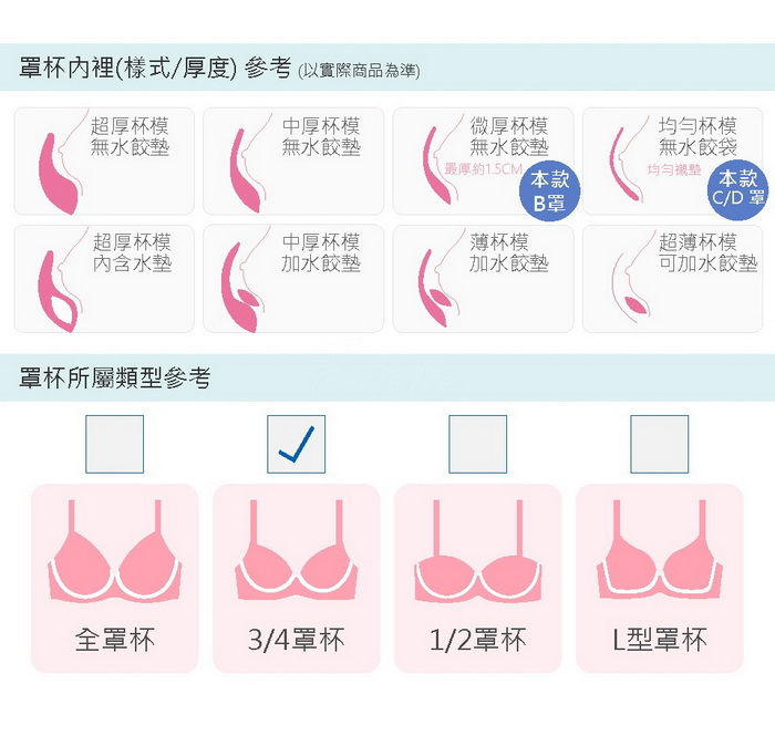 B罩杯最厚約1.5CM ,C罩杯為均勻襯墊