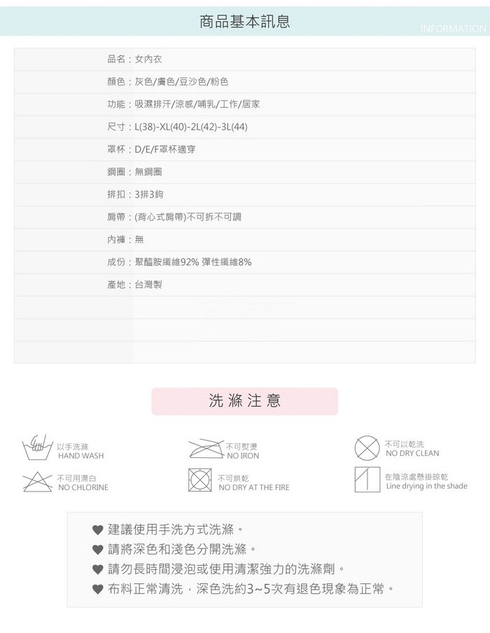整件內衣添加吸濕涼乾素材(DRY+COOL)