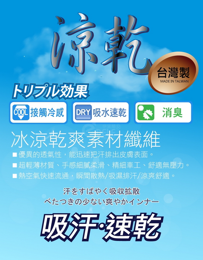 整件內衣添加吸濕涼乾素材(DRY+COOL)