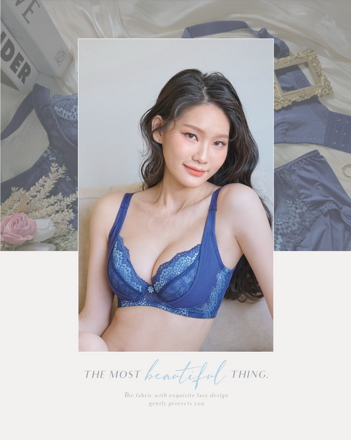 內衣【戀戀花開】HIDE美胸月牙提托內衣 *C-E罩 (藍) #2028