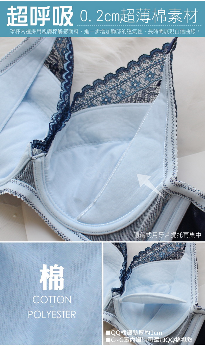 杯模內側無彈棉布,將胸部往上拉提更加集中,舒適呵護胸部肌膚散熱親膚感