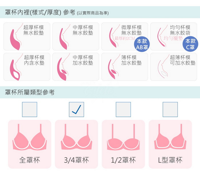 C罩杯為均勻襯墊