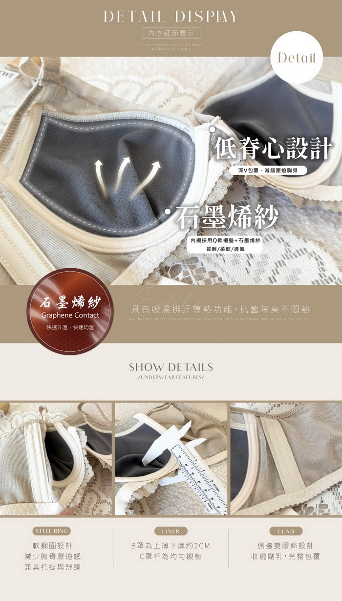 內襯採用Q軟襯墊+石墨烯紗,質輕、柔軟、透氣,能保持身體的清爽和舒適
