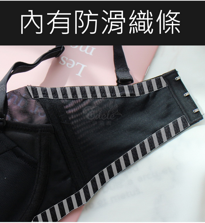 內衣下圍及背片側雙膠條添加"防滑背片"