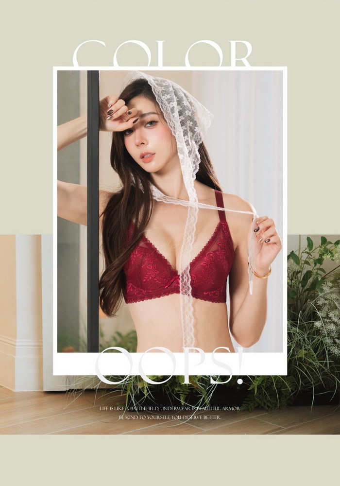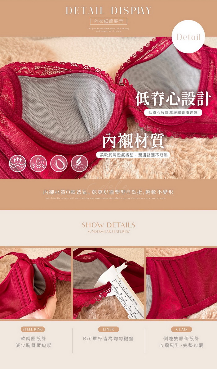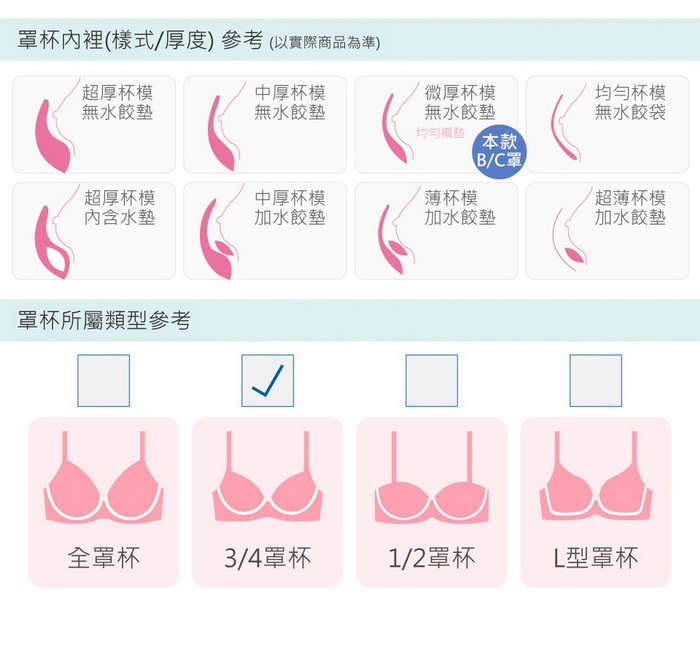 3/4罩造型,P-UP剪接從脅邊集中,加強副乳包覆