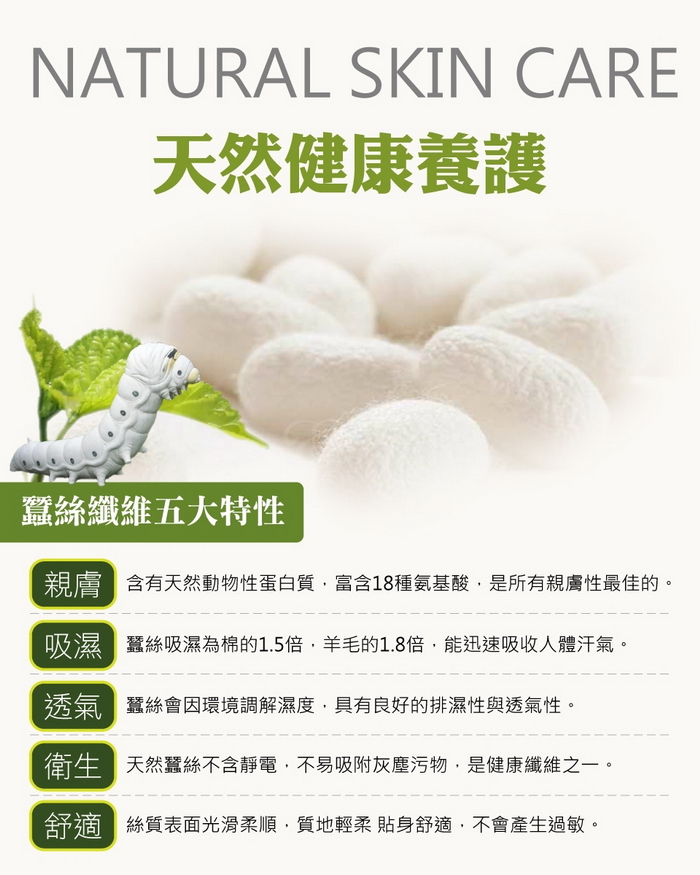 超柔軟親膚的蠶絲布料,透氣/伸展性十足