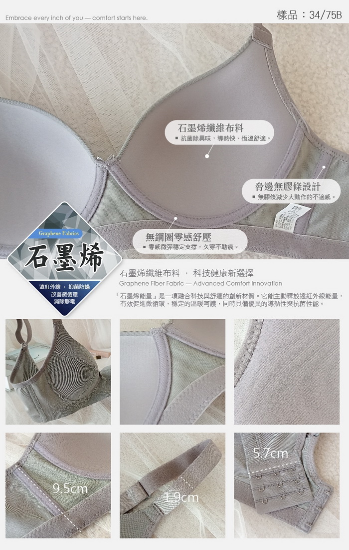 內衣採用創新石墨烯材質,親膚透氣,給您全天候的舒適呵護