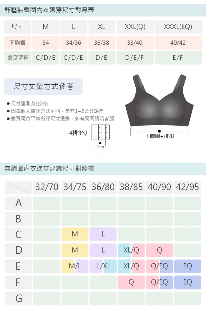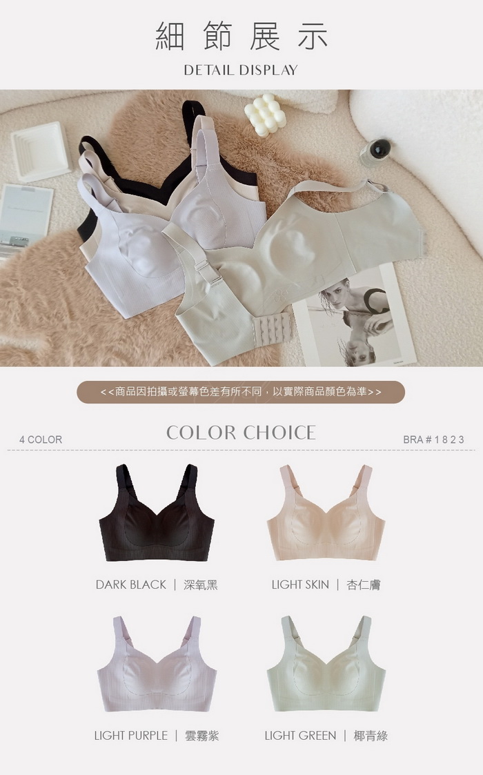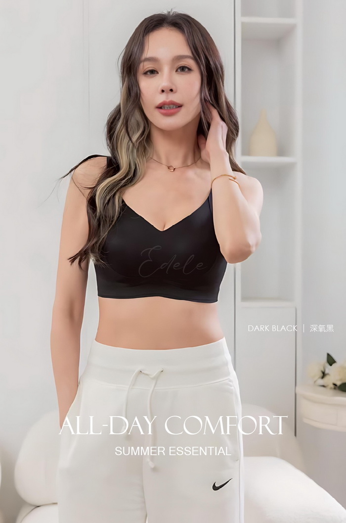 內衣採用無鋼圈設計,輕盈零壓迫,冰涼纖維,吸濕快乾,全天清爽