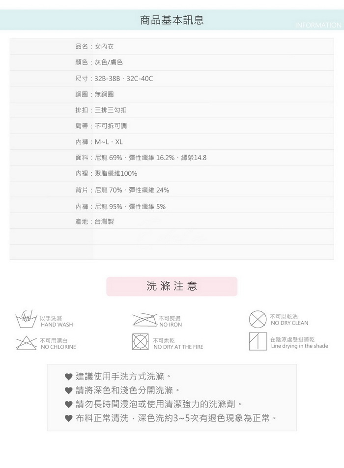 內襯月牙提托設計,加強提托胸型,渾圓集中