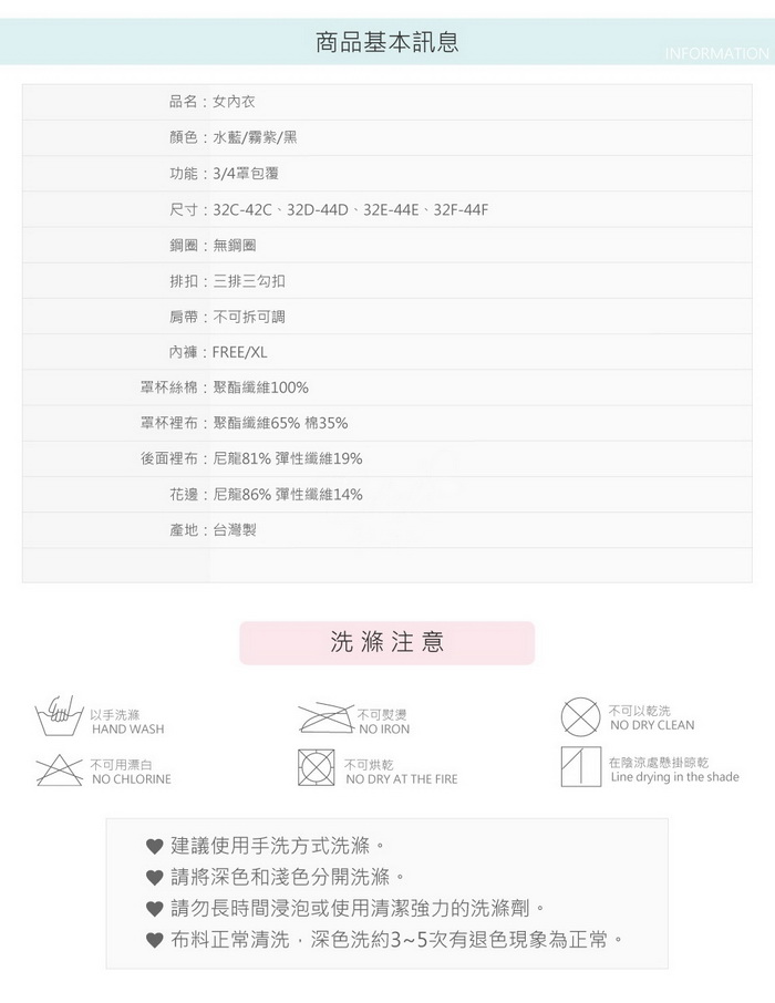 不用在擔心大尺碼買不到無鋼圈,此款最大尺碼是44F