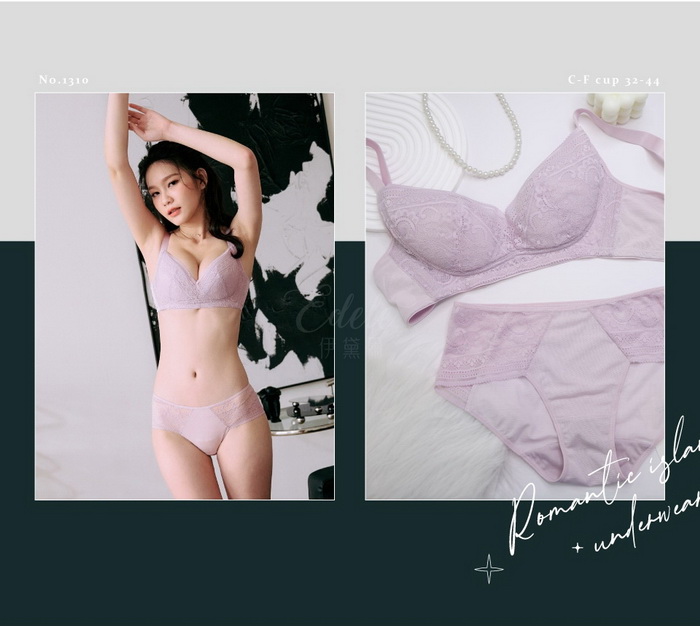 內衣【浪漫海島】集中蕾絲無鋼圈調整型內衣*C-F罩 (水藍) #1310