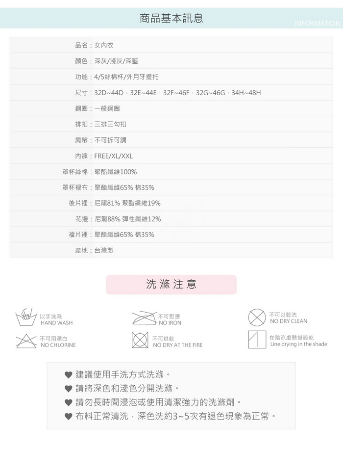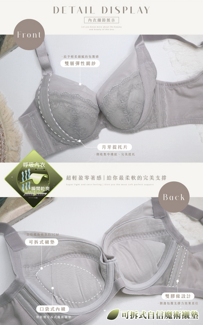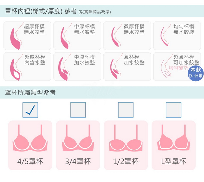 D-H罩杯都附有可拆式魔術水餃襯墊