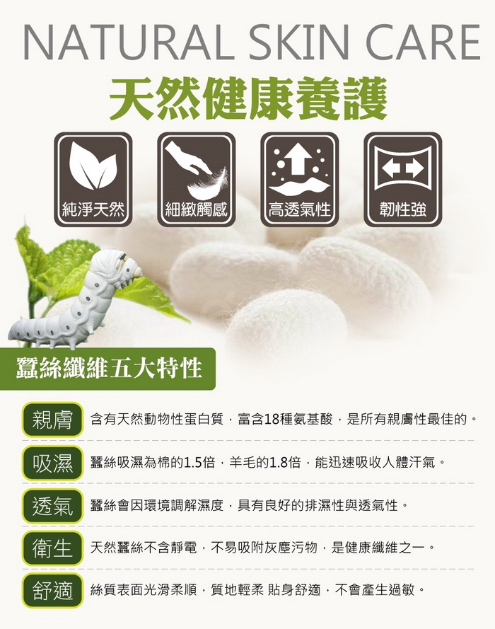 內裡添加健康蠶絲裡料,就像你的第二層肌膚