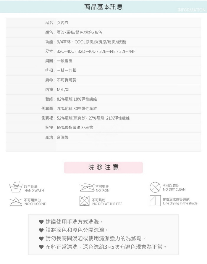 內衣2.0版改良升級,更穩定、更包覆 3/4罩杯全包式給你滿滿安全感