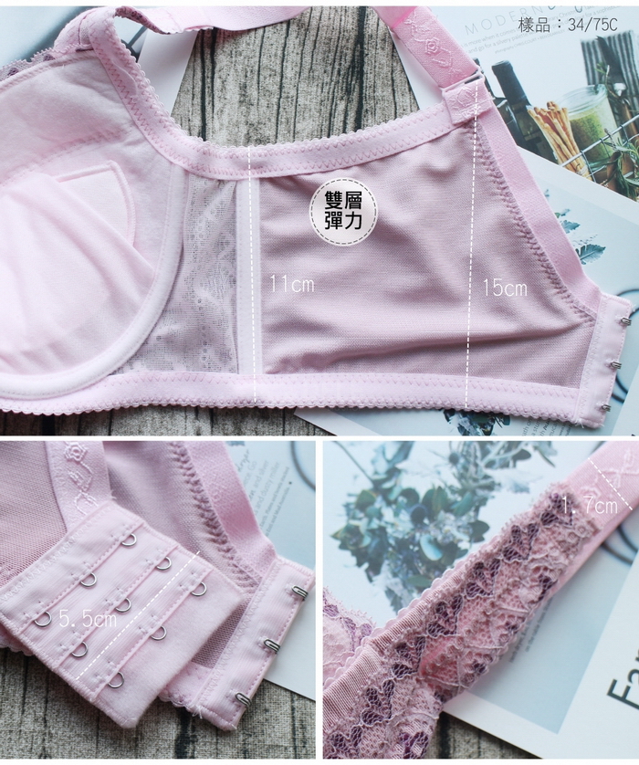 內衣【漫步香緹】蕾絲集中包覆吸濕排汗魔術內衣*B-G罩32-42 (櫻花粉) #2352