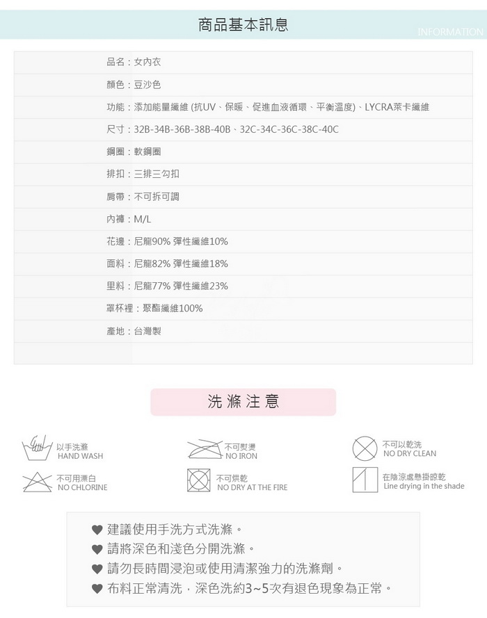 罩杯內襯採用--> 涼感吸濕排汗紗!!
