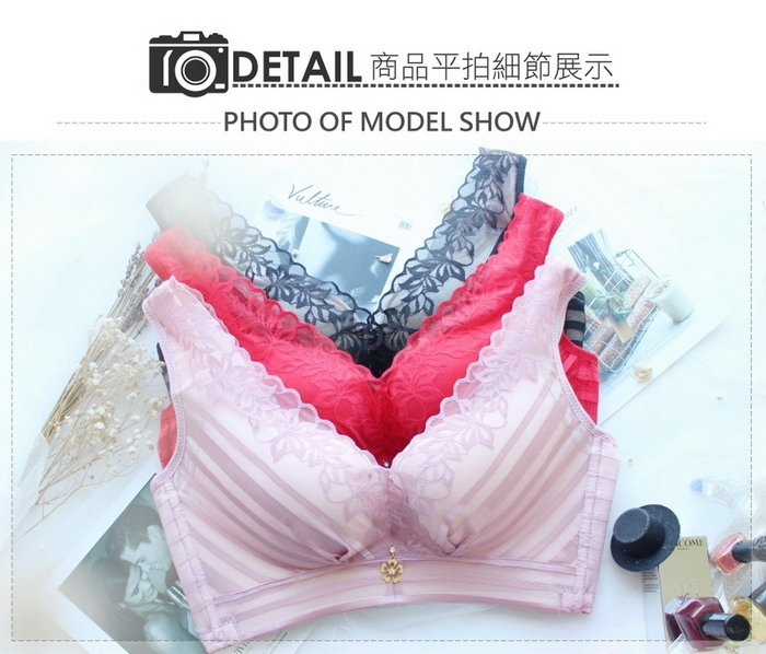 挺V浪漫滾邊薄紗蕾絲,橫條紋立體網紗,精緻宮廷吊鑽設計,塑造更誘惑的胸部曲線,展現迷人風姿
