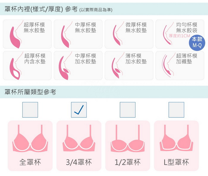 罩杯為上薄下厚襯墊,最厚處約1CM