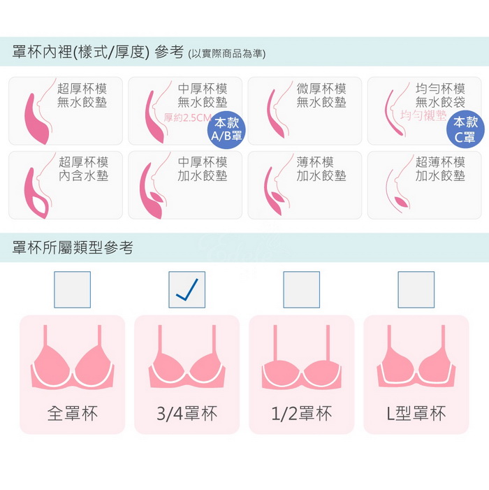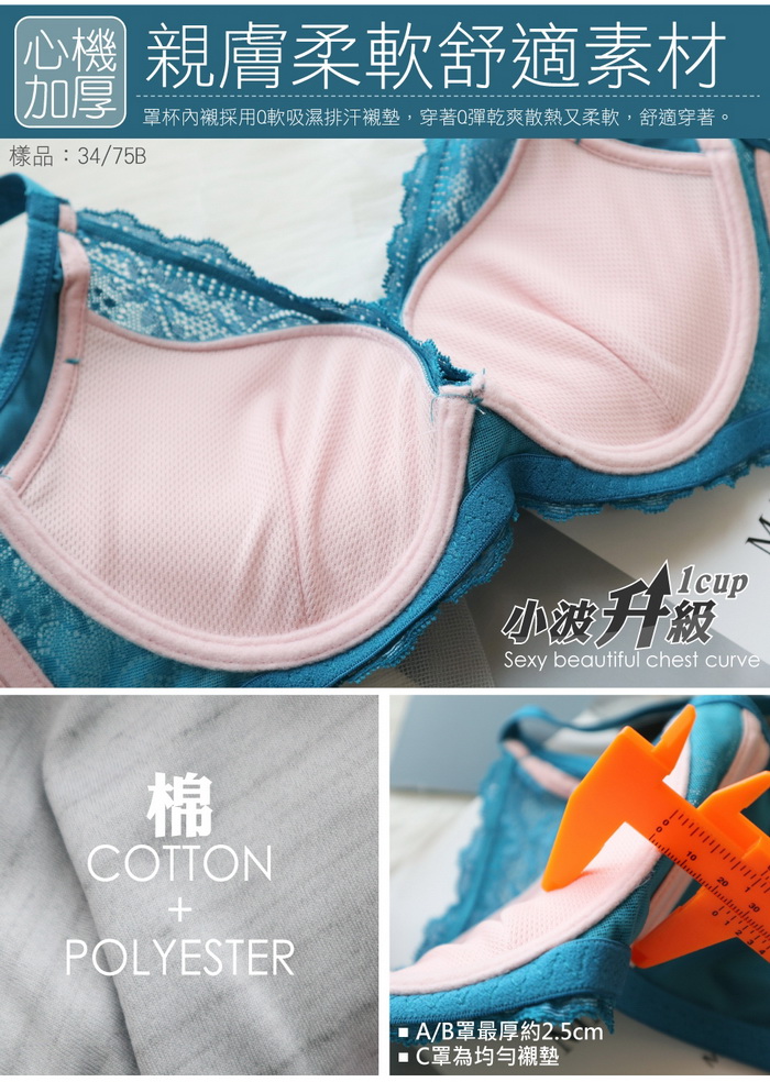 A/B罩杯內襯加厚設計,最厚處約2.5公分。