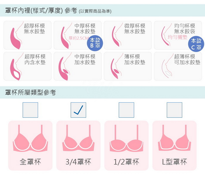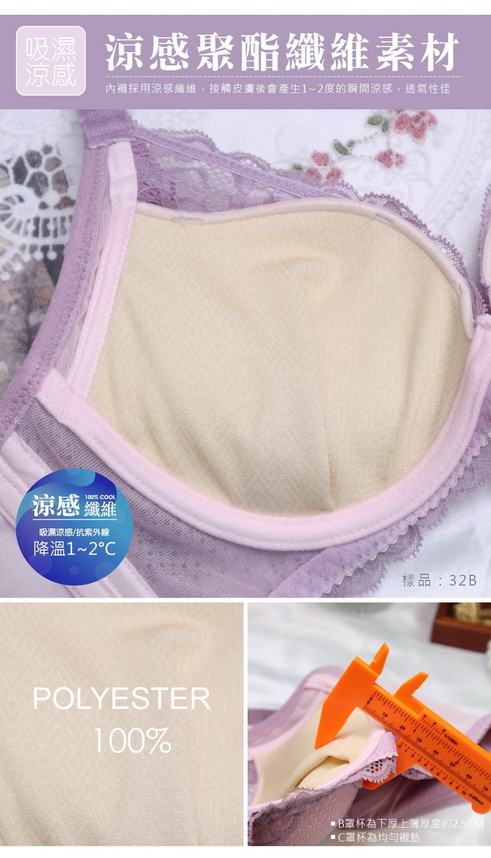 B罩為下厚上薄,罩杯最厚度為2.5CM