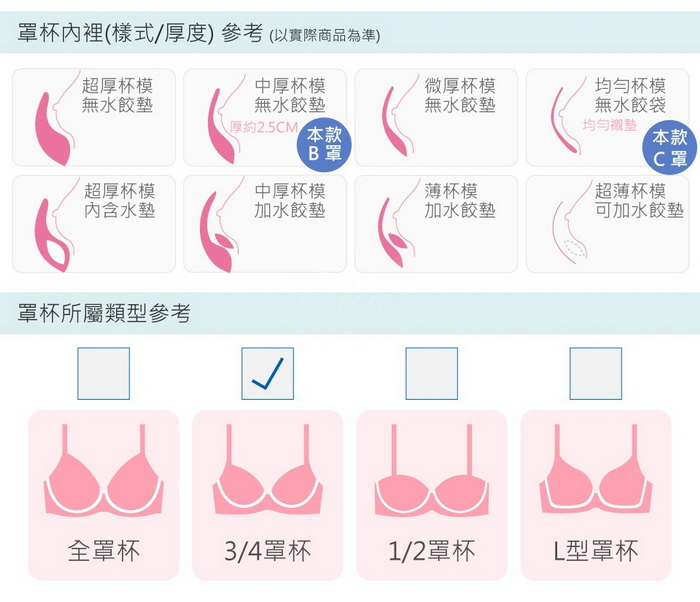 C罩杯為均勻襯墊