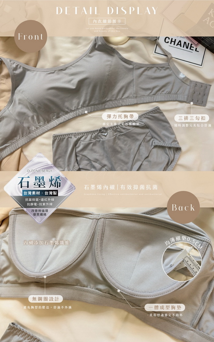 內裡添加石墨烯特殊纖維,能有效抑菌抗菌,給肌膚最舒服的呵護。