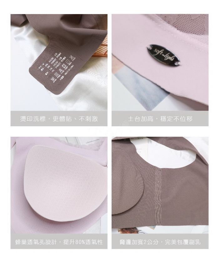 內襯添加9宮格蜂巢透氣孔設計,貼近肌膚,清爽潤澤、吸濕排汗,是最佳親膚纖維