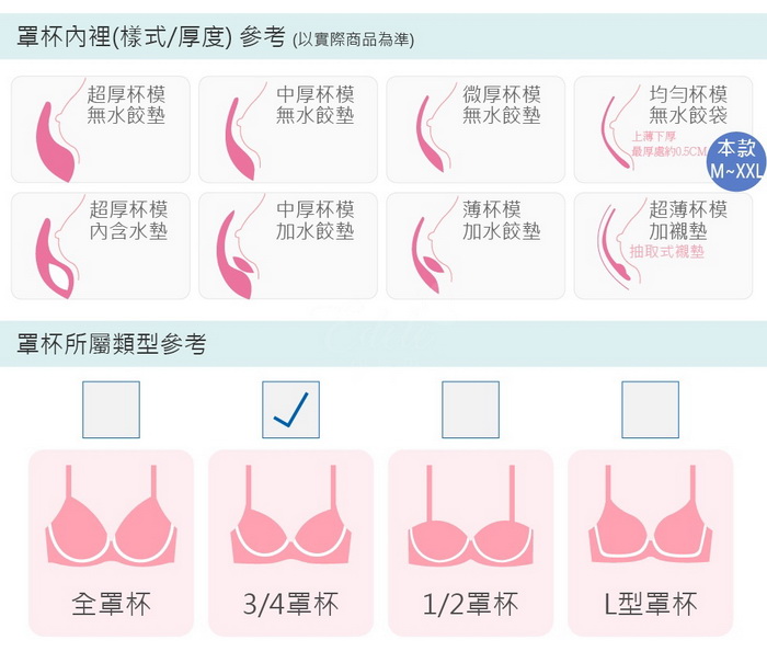 罩杯為均薄襯墊最厚處約0.5CM