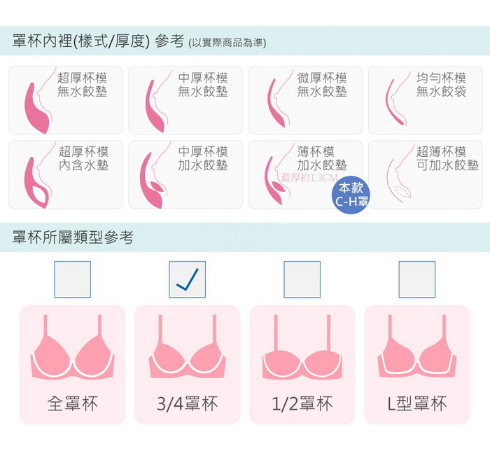 C-H罩杯都附有可拆式魔術水餃襯墊