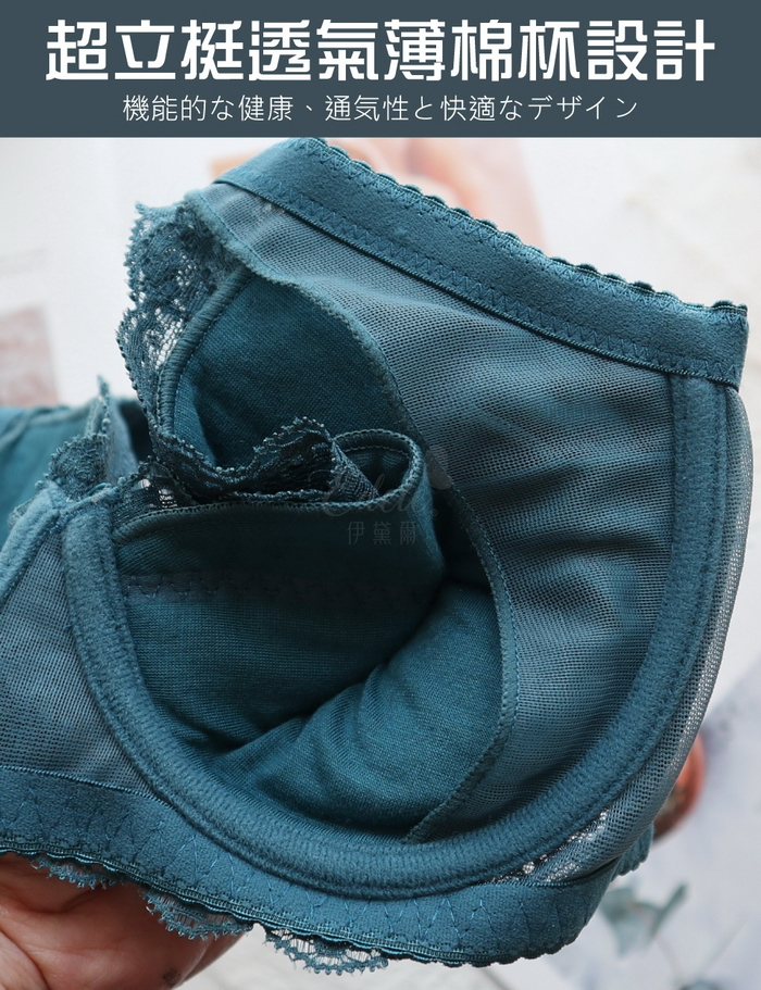 4/5罩杯上緣蕾絲設計,徹底包覆前胸,能完整貼合渾圓曲線,更加性感唷~