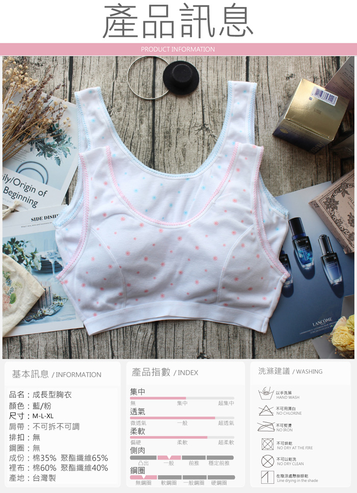 內衣【花兒甜心】棉柔少女成長美胸衣 M-XL (藍色)#0835