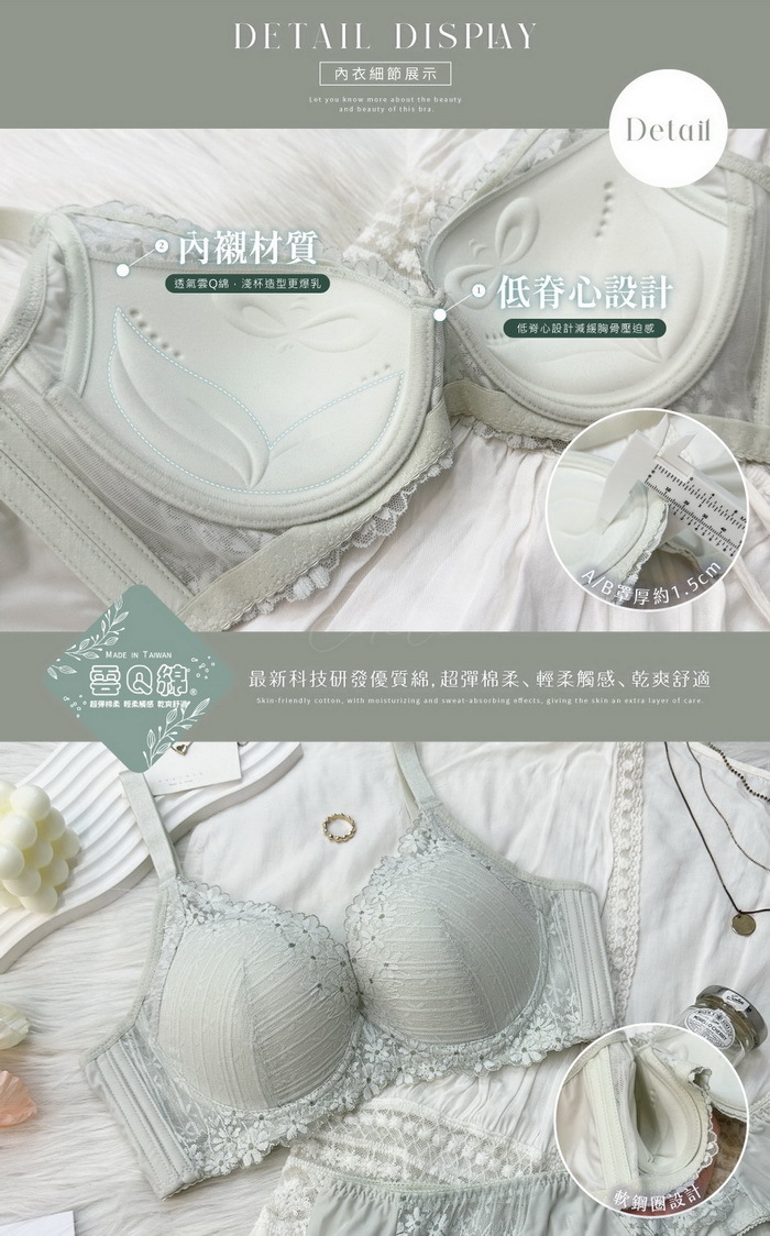 對抗天氣悶熱,穿整天內衣難受,罩杯內裡雲Q綿是採最新科技