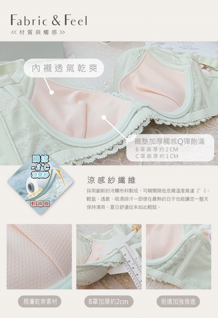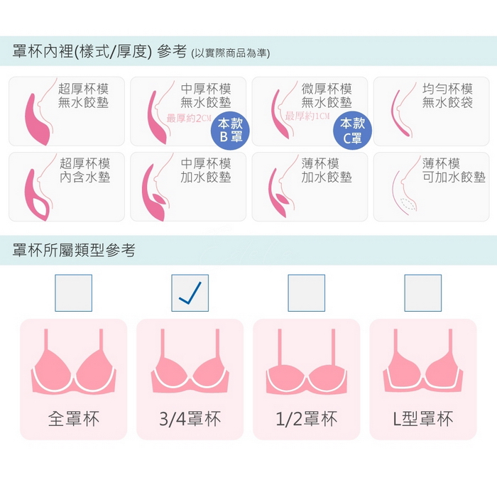 B罩為下厚上薄2CM內襯 ,C罩為均勻襯墊1CM
