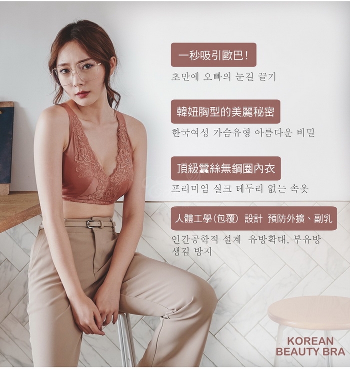 內衣【薇宓妮雅】韓國全蠶絲深V無鋼圈內衣*M-XXXL (粉橘)#5730