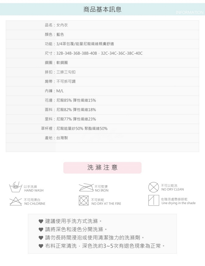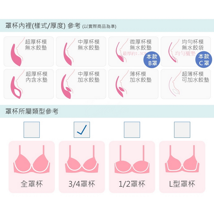 3/4罩杯設計,P-UP剪接從脅邊集中,營造優美乳溝線條