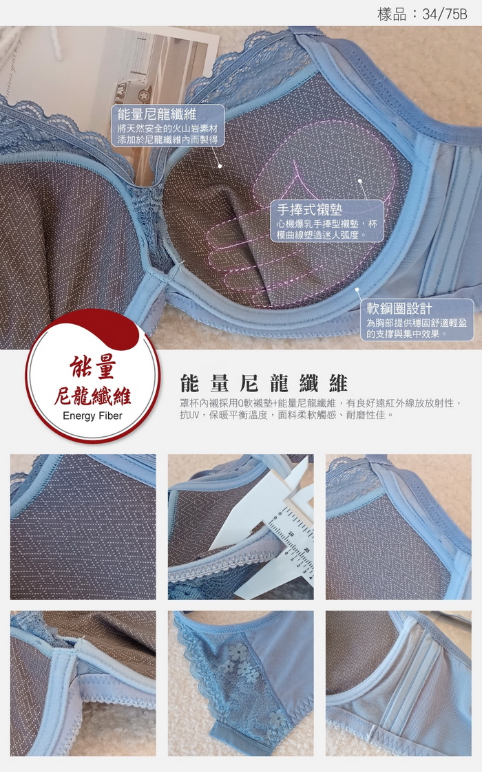 罩杯內襯採用手托Q軟襯墊+能量尼龍纖