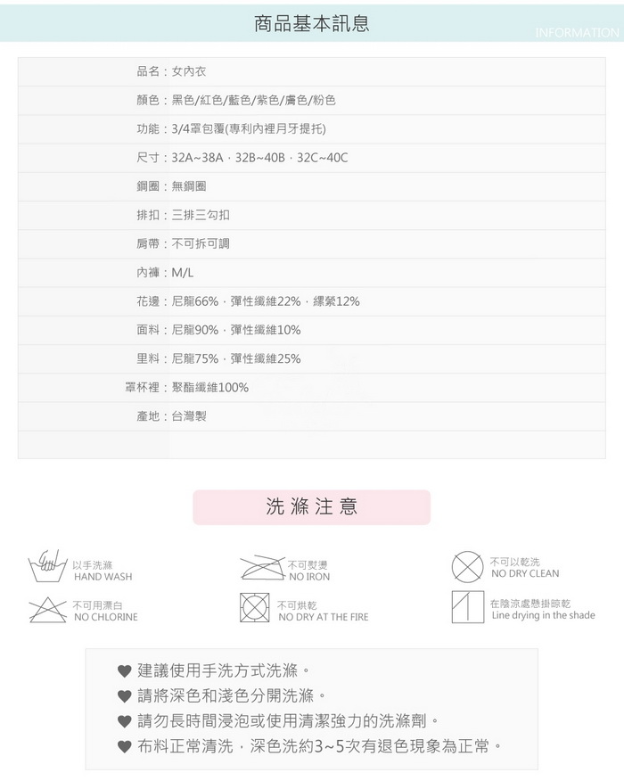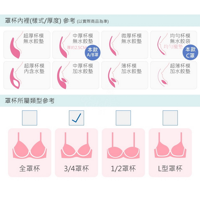 此款內衣AB罩下厚上薄集中款2.5CM 下圍標準台灣版型