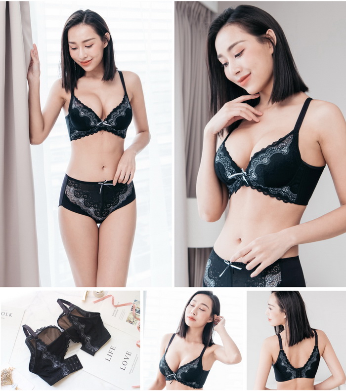 無鋼圈內衣 Edele【小胸集中】無鋼圈水滴型內衣 (黑)