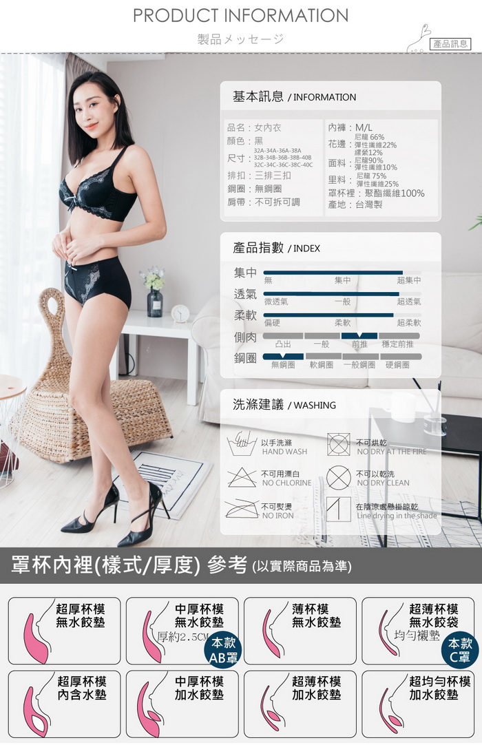 3/4罩的水滴型罩杯,完美拉提 軟Q杯模,貼合度極佳