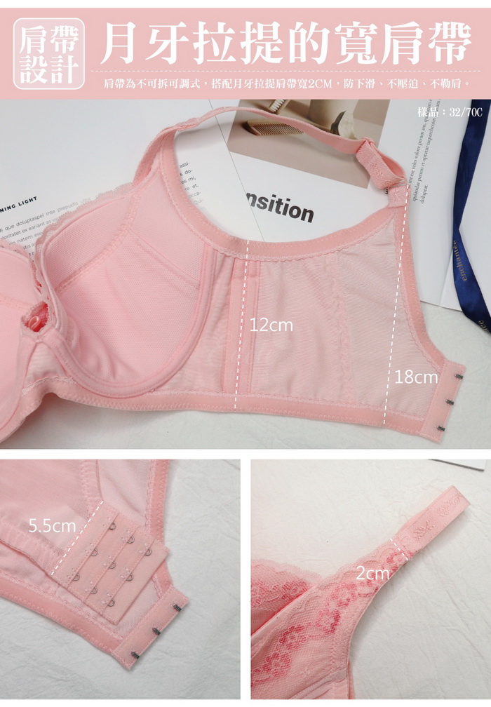 肩帶為不可拆可調式,搭配月牙拉提肩帶寬2CM,防下滑、不壓迫、不勒肩