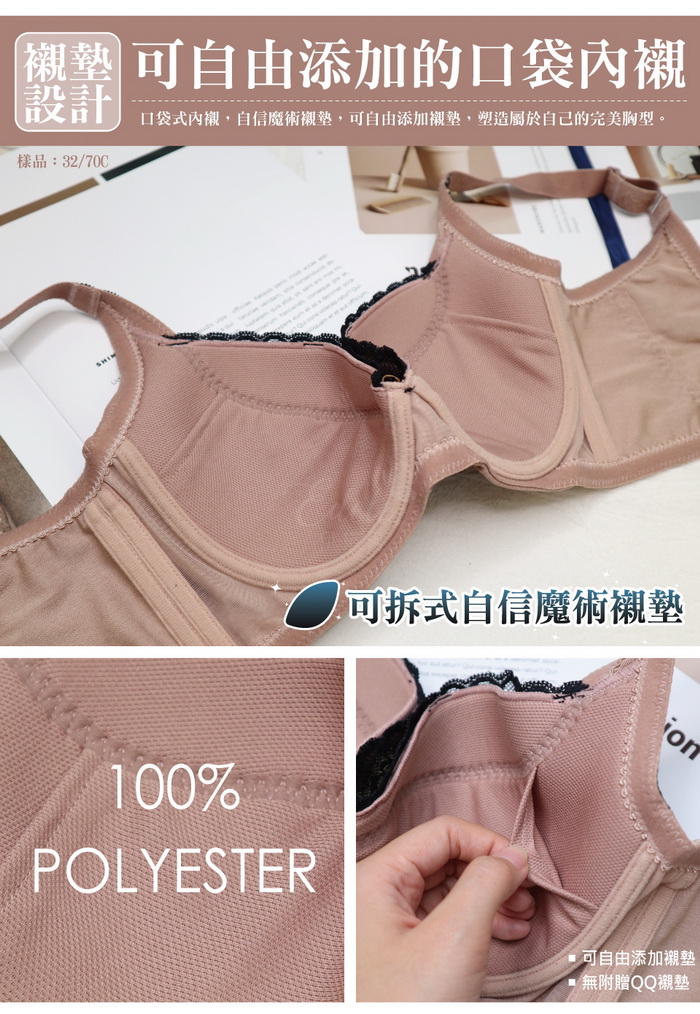 口袋式內襯,自信魔術襯墊,可自由添加襯墊,塑造屬於自己的完美胸型